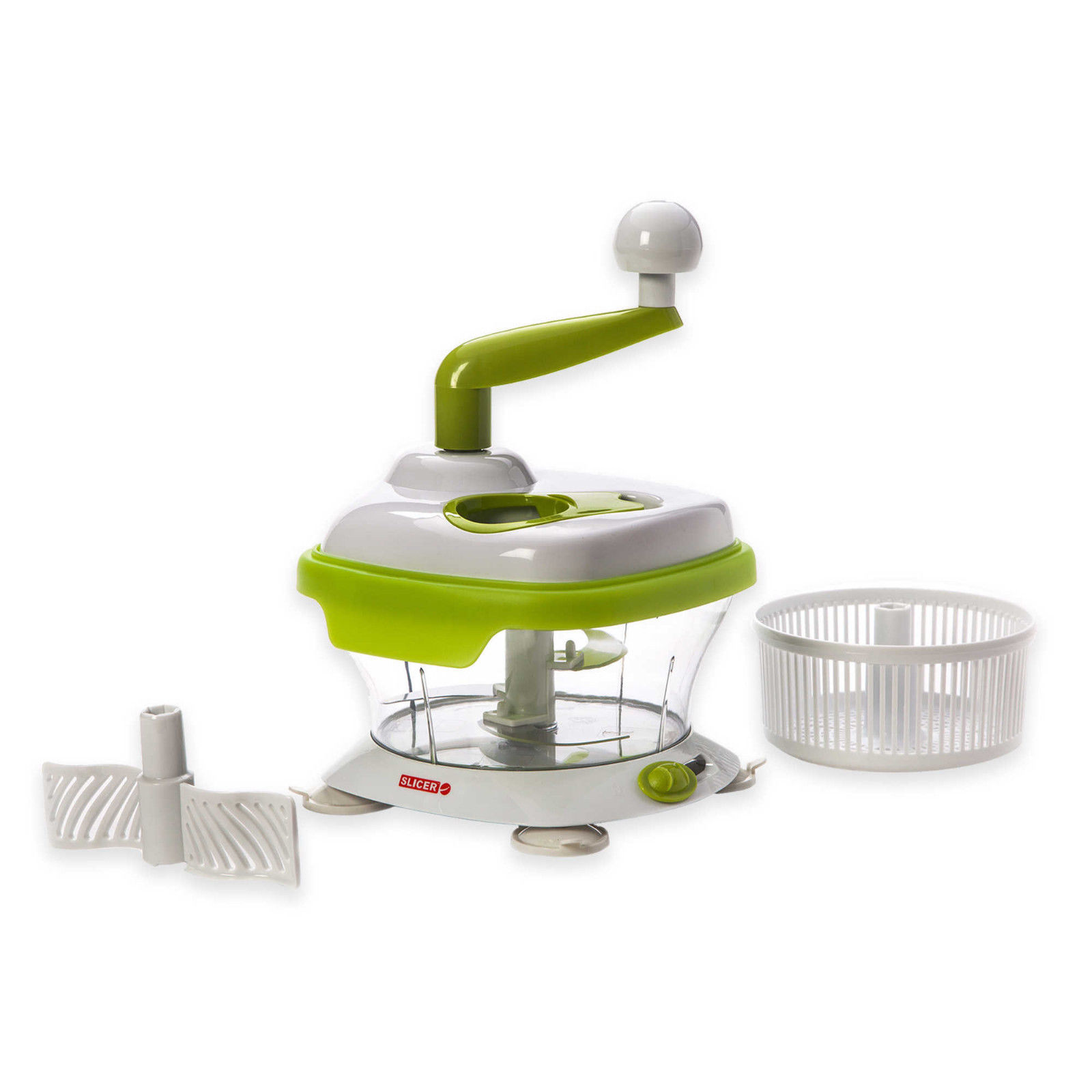 The ideal product for preparing all kinds of vegetables salads, mincing meat for meatballs, chopping tomatoes for salsa, cutting potatoes for fritters, whipping eggs and cream for baking. One hand operation handle for easy and simple slicing. Three high-quality stainless-steel blades, designed for optimal chopping. Three detachable heads: food processor/ whisk /lettuce and herb spinner. Vegetable and fruit chopper insert for quick and fresh salad preparation.